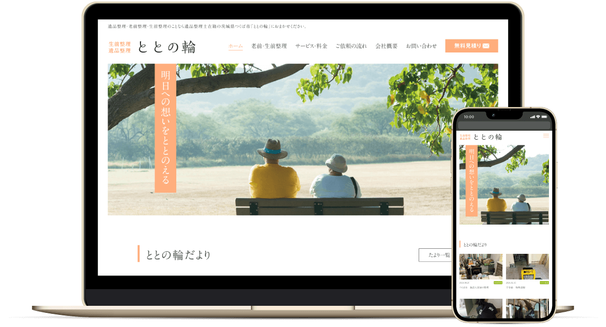 茨城県つくば市を拠点に、県南地域を中心として「遺品整理」「老前整理」「生前整理」などのサービスを提供されている「ととの輪」様のWebサイトのコーディングを担当いたしました。