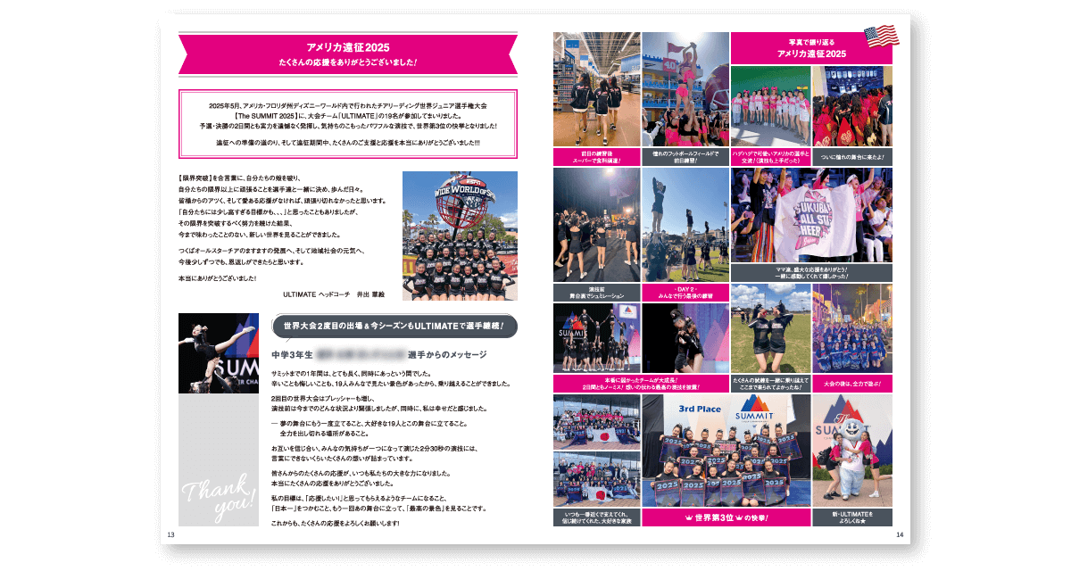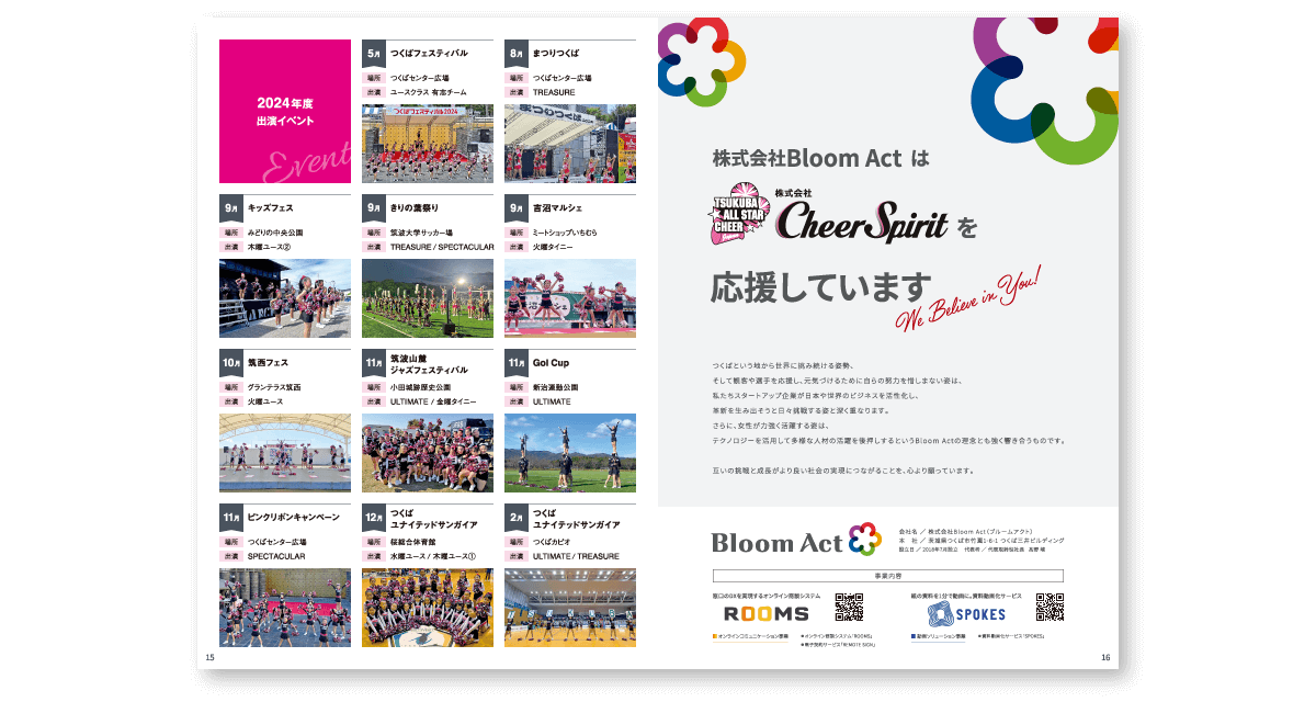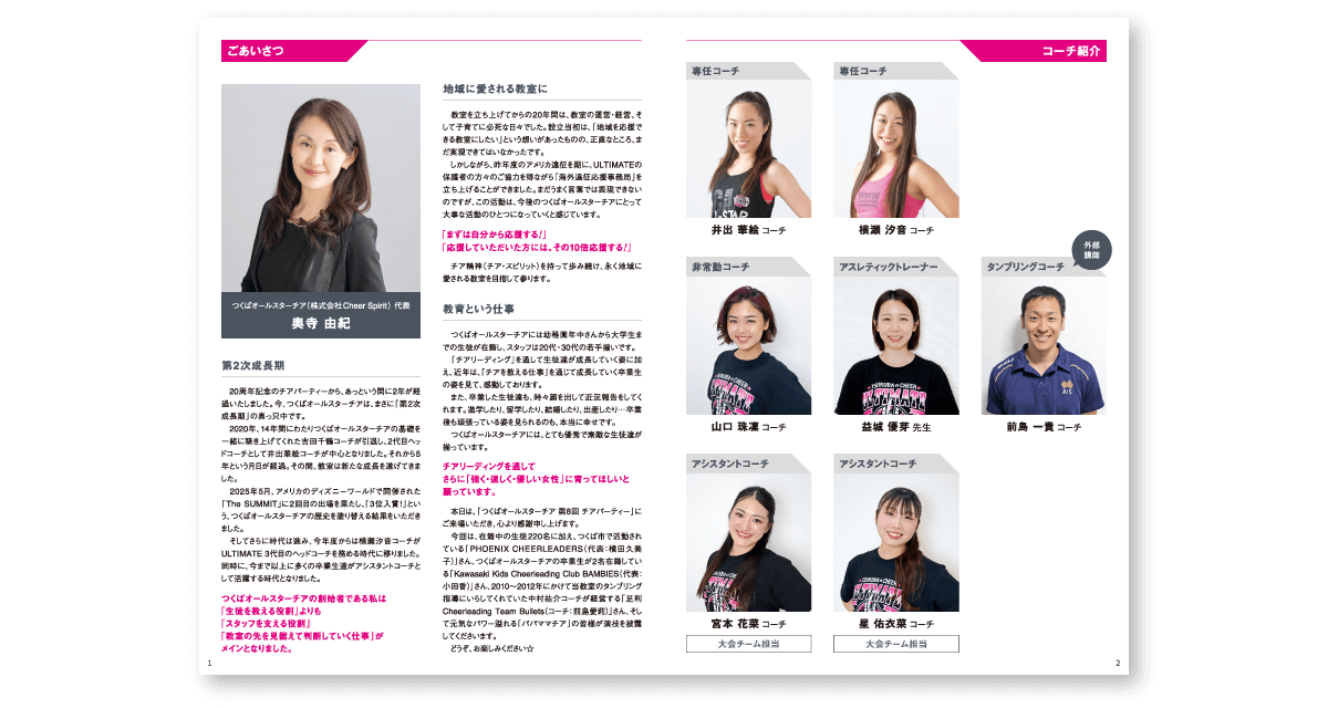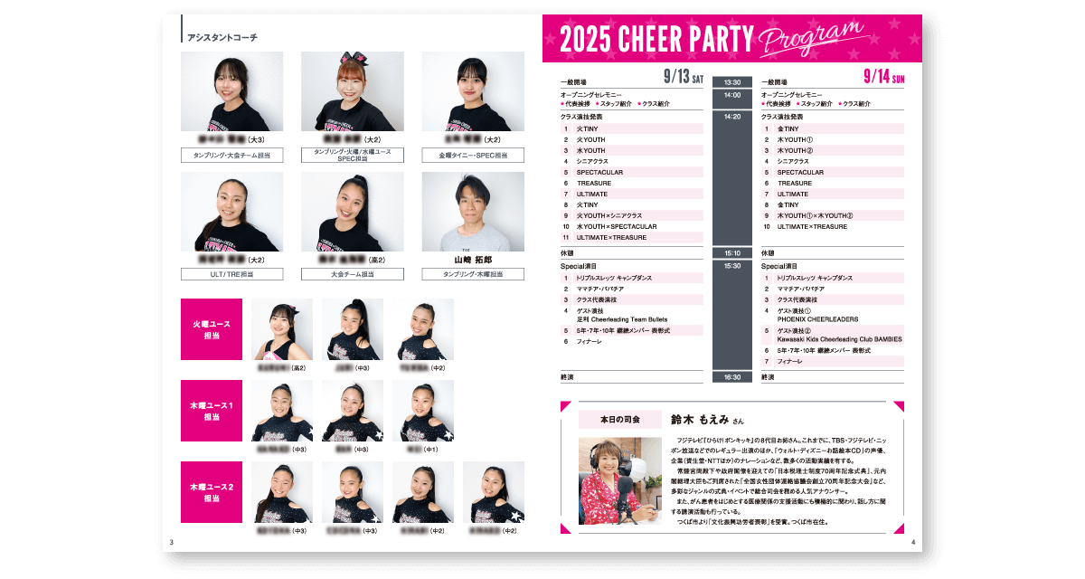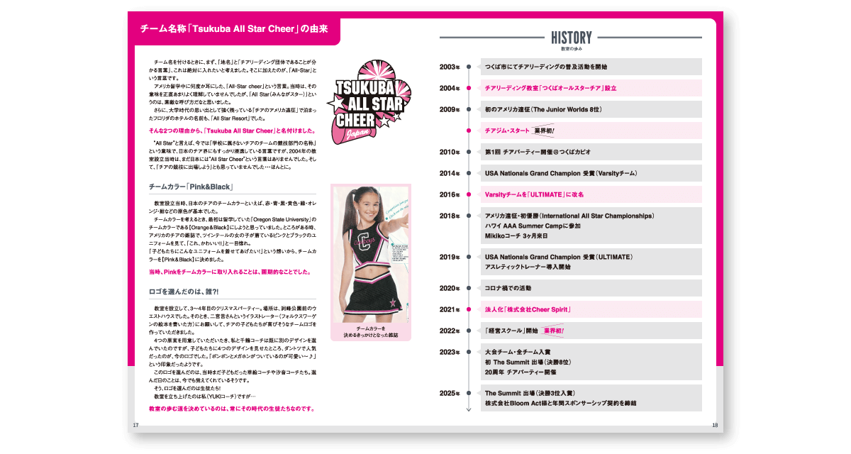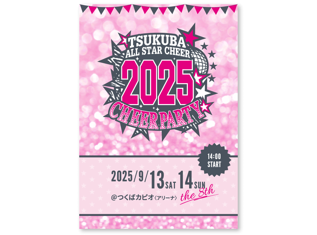 「日本初」のチアジムを運営し、全国大会やアメリカ遠征を目指して年中〜高校生が活動している、茨城県つくば市の全国トップレベルのチアリーディング教室「つくばオールスターチア」様の『チアパーティー』のパンフレットをデザインいたしました。